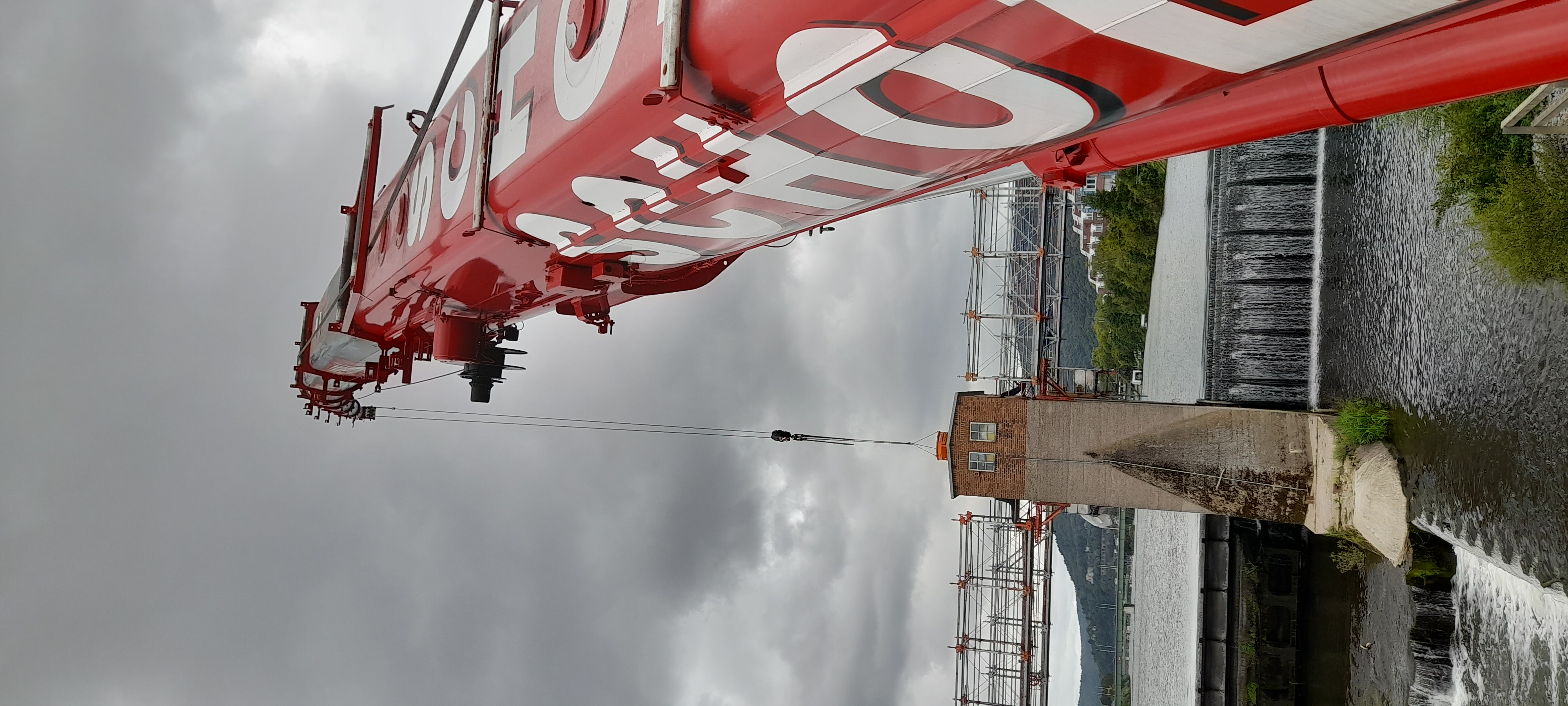 - Stabilität auf engstem Raum: Trotz der exponierten Lage stand der Kran sicher über den Fluten – ein technisches Kunststück.