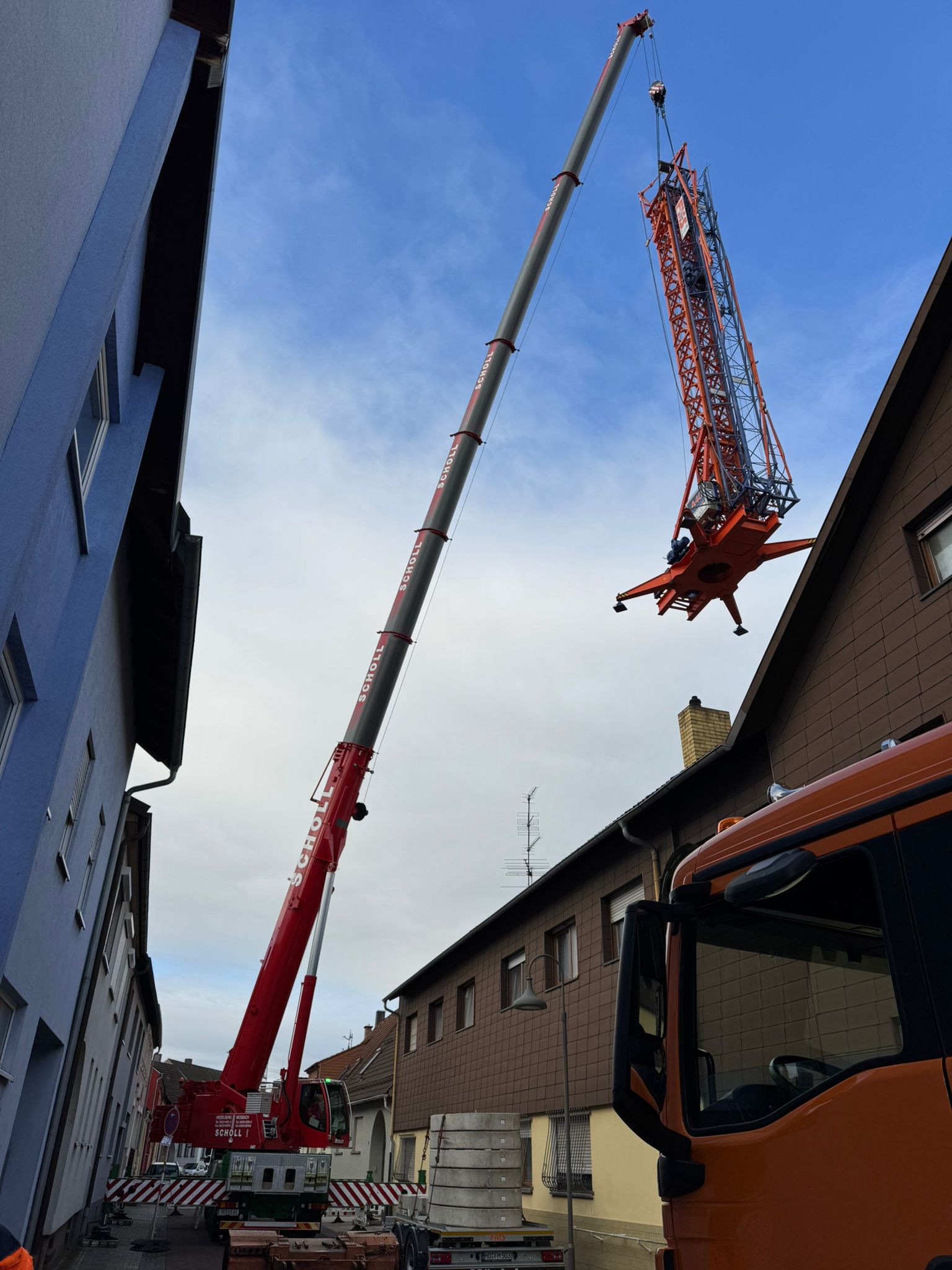 Unser Kran hat für die Firma FMS einen Baukran gesetzt.
